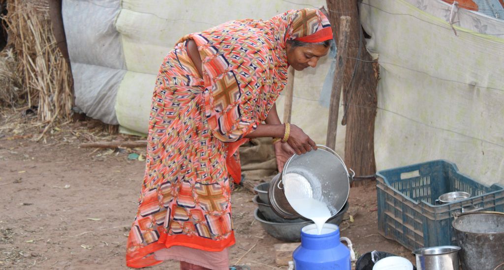 Hira Bavaliya, a 55-year-old herder from Limbala, got enrolled in the RBP after the initial meetings. She is a marginal farmer with 1.6 acre of land and relies on animal husbandry for her income. She has three buffalos and two calves. The milk from these animals provides her family a source of livelihood, in addition to meeting their domestic consumption needs.